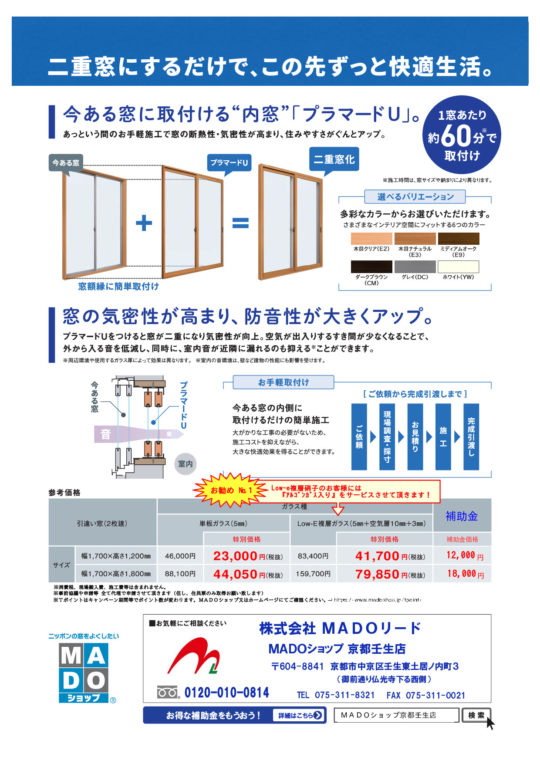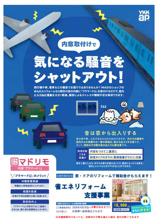 冷暖房費の削減や騒音でお悩みの方はご相談に応じさせて頂きますので、どうぞお気軽にお問合せくださいませ。