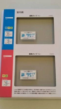 写真はYKKAPのLow-e複層硝子です(複層硝子の空気層面にLow-e金属膜をコーティングしてあります)