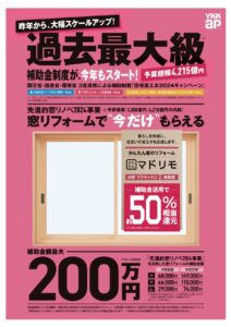 MADOショップ京都壬生店のホームページをご覧いただきましてありがとうございます!! 本日12月28日が弊社の仕事納めとなり、2024年も残り3日となりました。 今年度も窓や玄関リフォームにご活用いただける国土交通省や環 […]