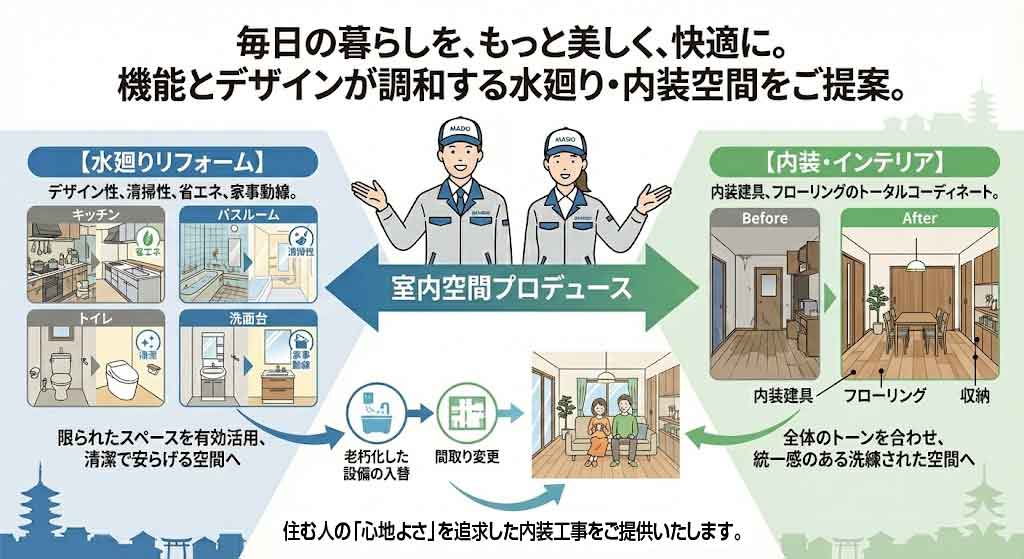 水廻りから、内装、外壁まで。 住まいの「困った」を丸ごと解決する、京都のトータル・サポーター。
